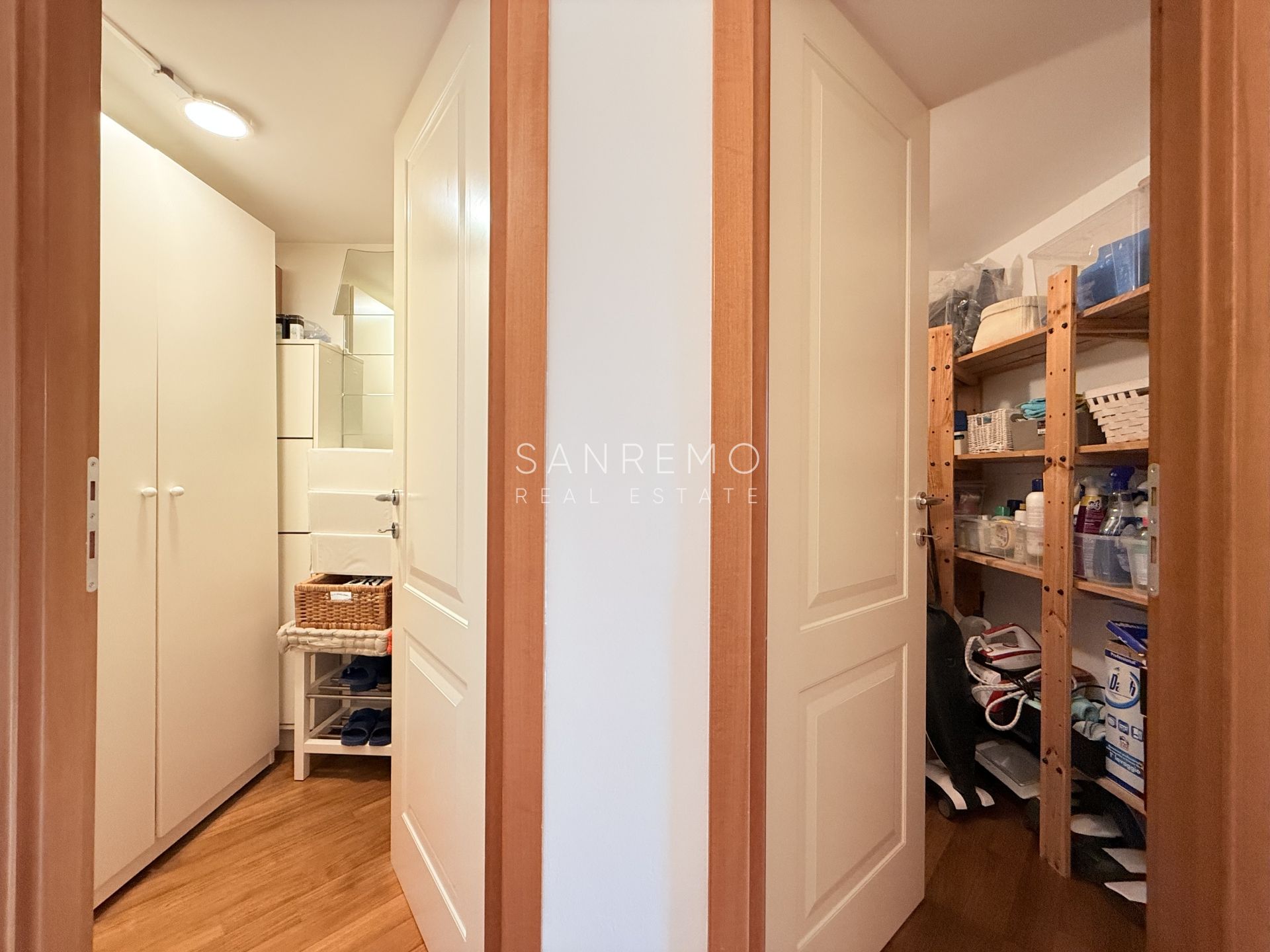 Планировка включает просторную гостиную, отдельную полностью оборудованную кухню, три спальни, три ванные комнаты, две кладовые и удобный вспомогательный балкон. В стоимость также входят частный гараж и подвал.